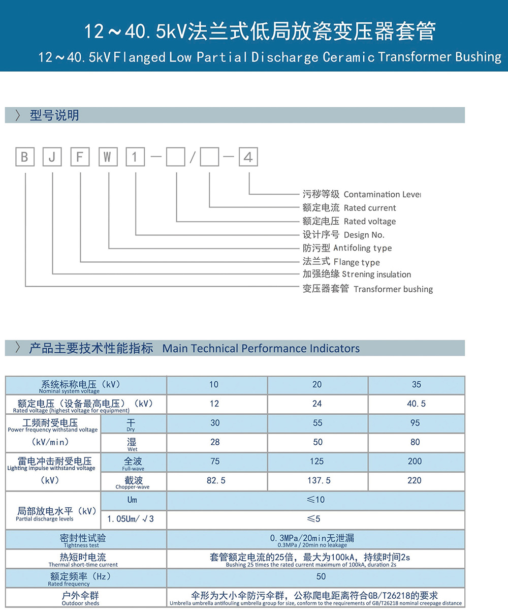 12~40.5kV法蘭式低局放瓷變壓器套管