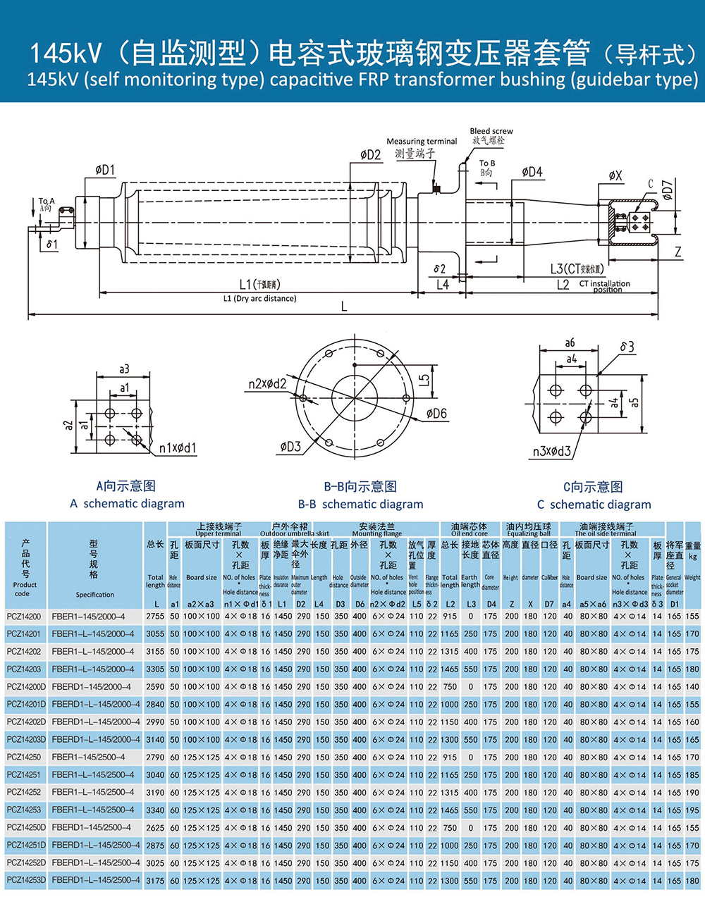 145kV (自監(jiān)測型)電容式玻璃鋼變壓器套管(導(dǎo)桿式)